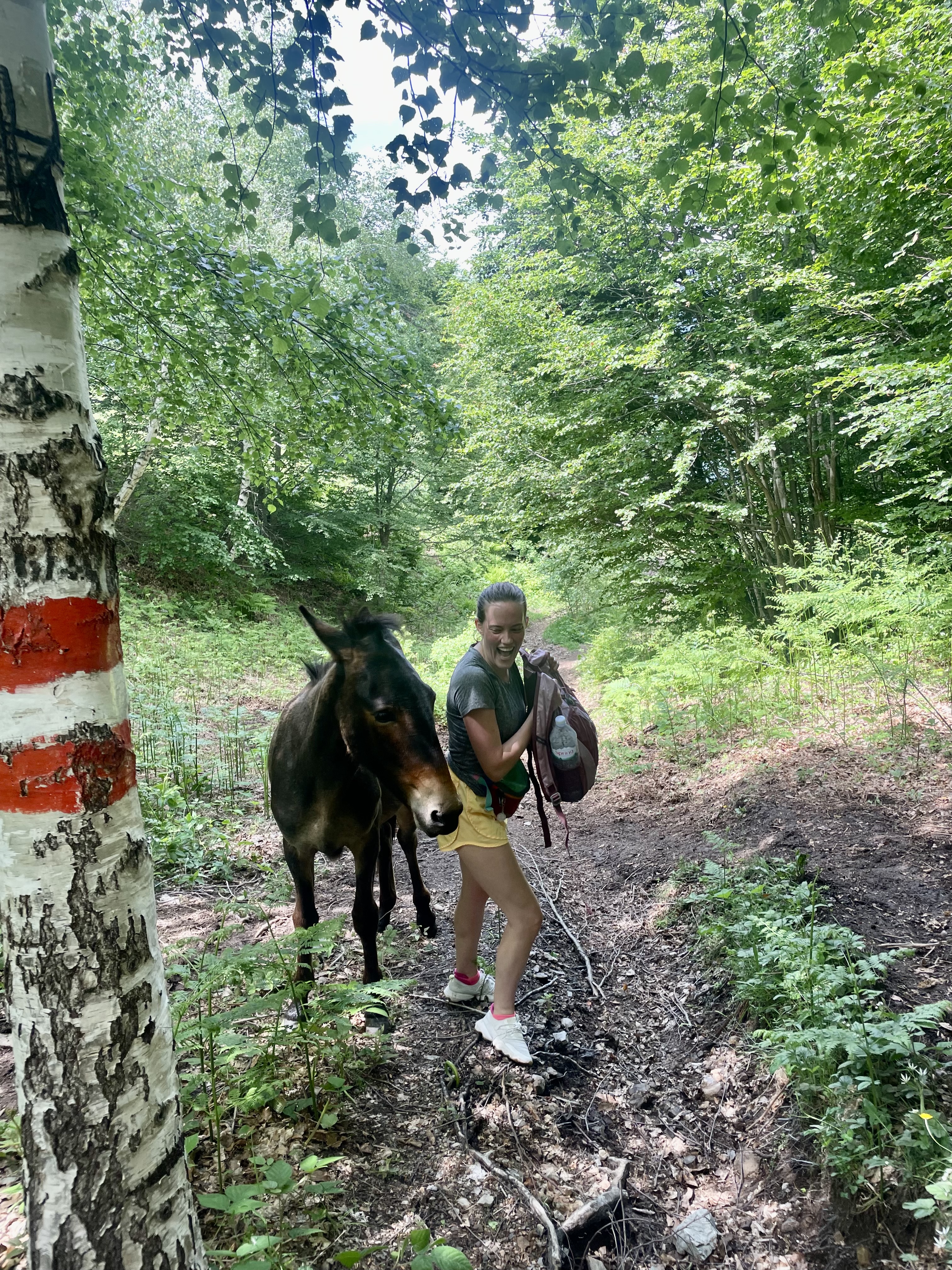 We met some animals along the way: cows, dogs, bugs, horses. This horse (mule?) charged us, stopped right in front of Liam, and tried to eat my bag and my clothes. We eventually escaped after a few minutes.