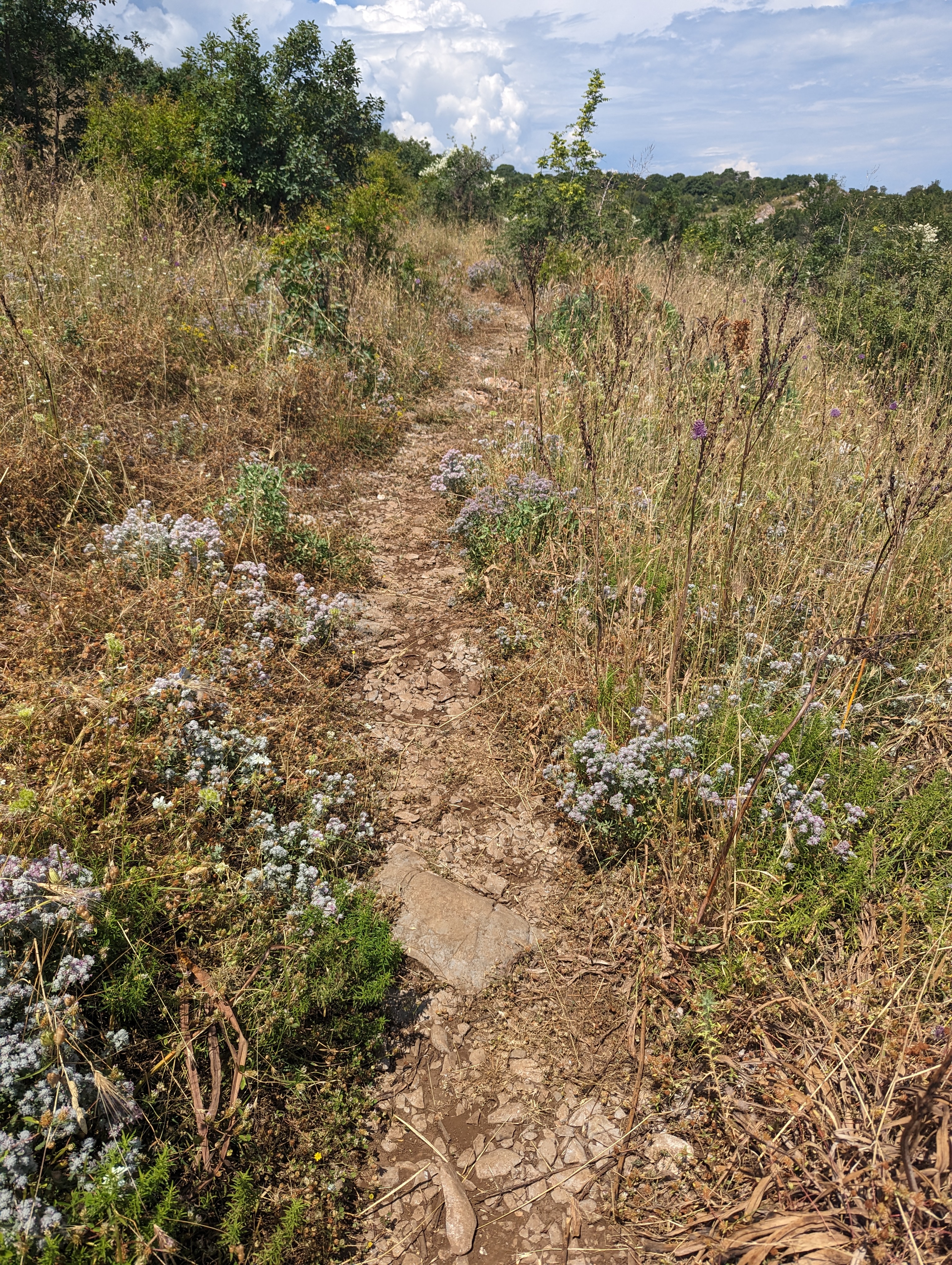 Once the road turned to gravel, I parked my bike and kept walking. The trail eventually turned to a nature path, and I accidentally walked up to the border of Montenegro!