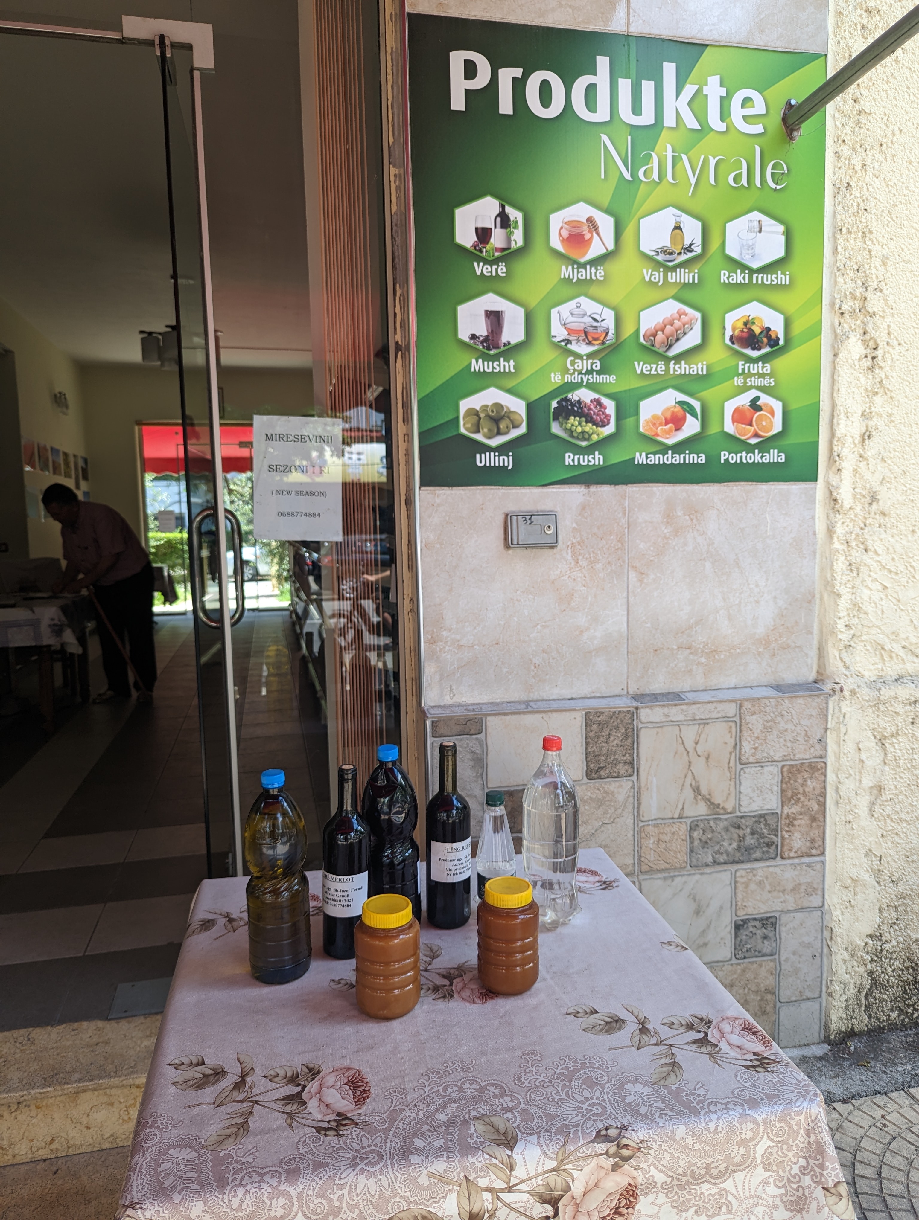 I purchased a bottle of raki infused with blueberries from the mountains and also a bottle of Kallmet wine. I’m very happy for the experience.