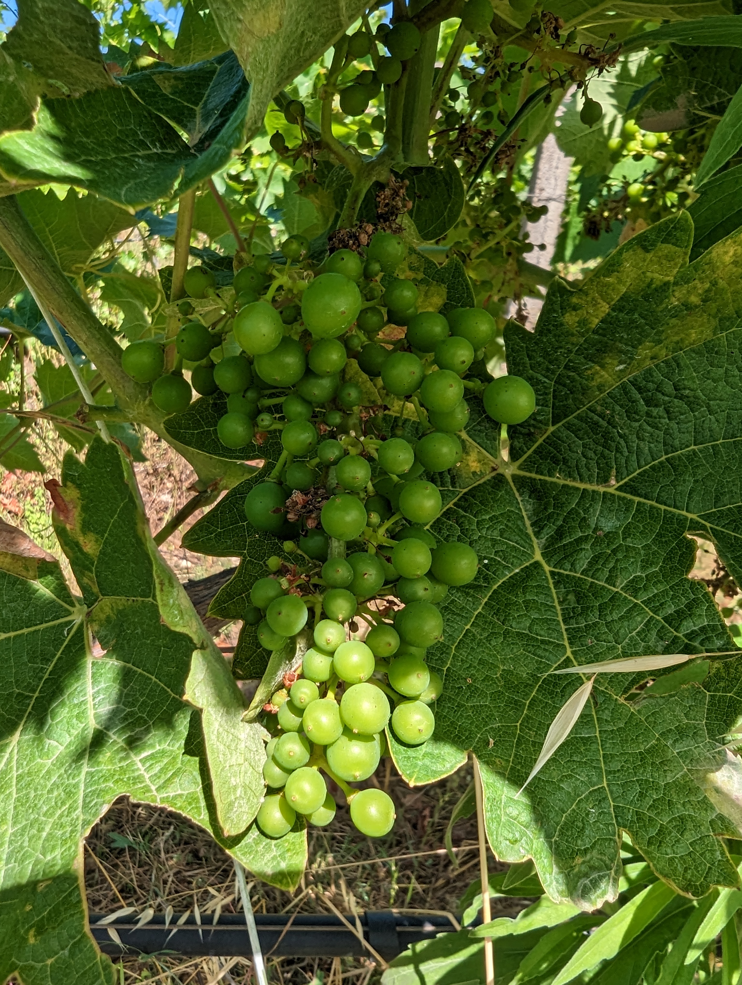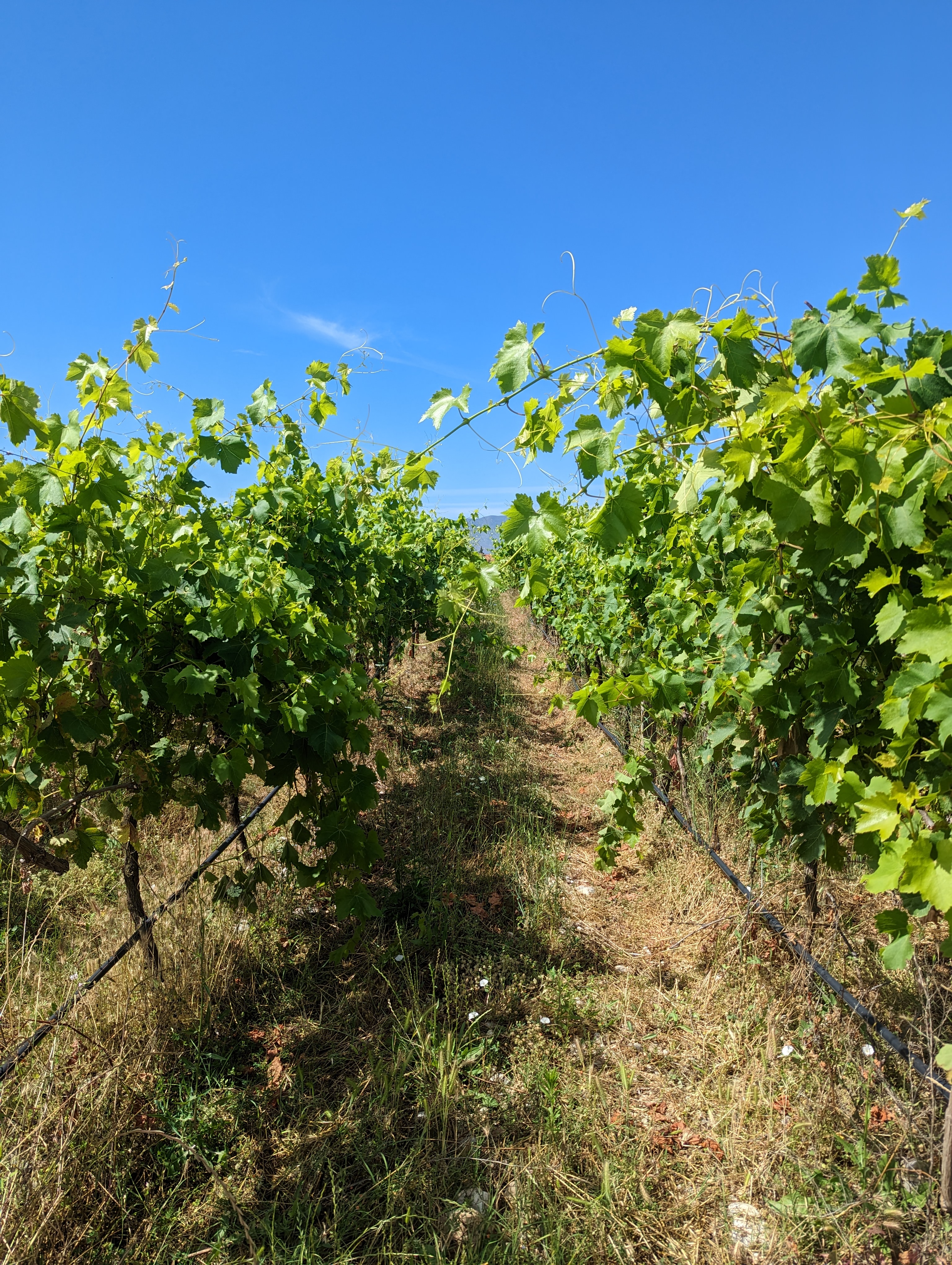 The vineyard had rows of Kallmet grapes interspersed with every fourth row being Merlot grapes. To the untrained eye, all the rows look the same, but the Merlot leaves are a bit smaller and closer together, and the Kallmet leaves are thinner in texture. Planting Merlot among the Kallmet helps with the overall success of the vineyard and health of the plants, I think relating to pollination.