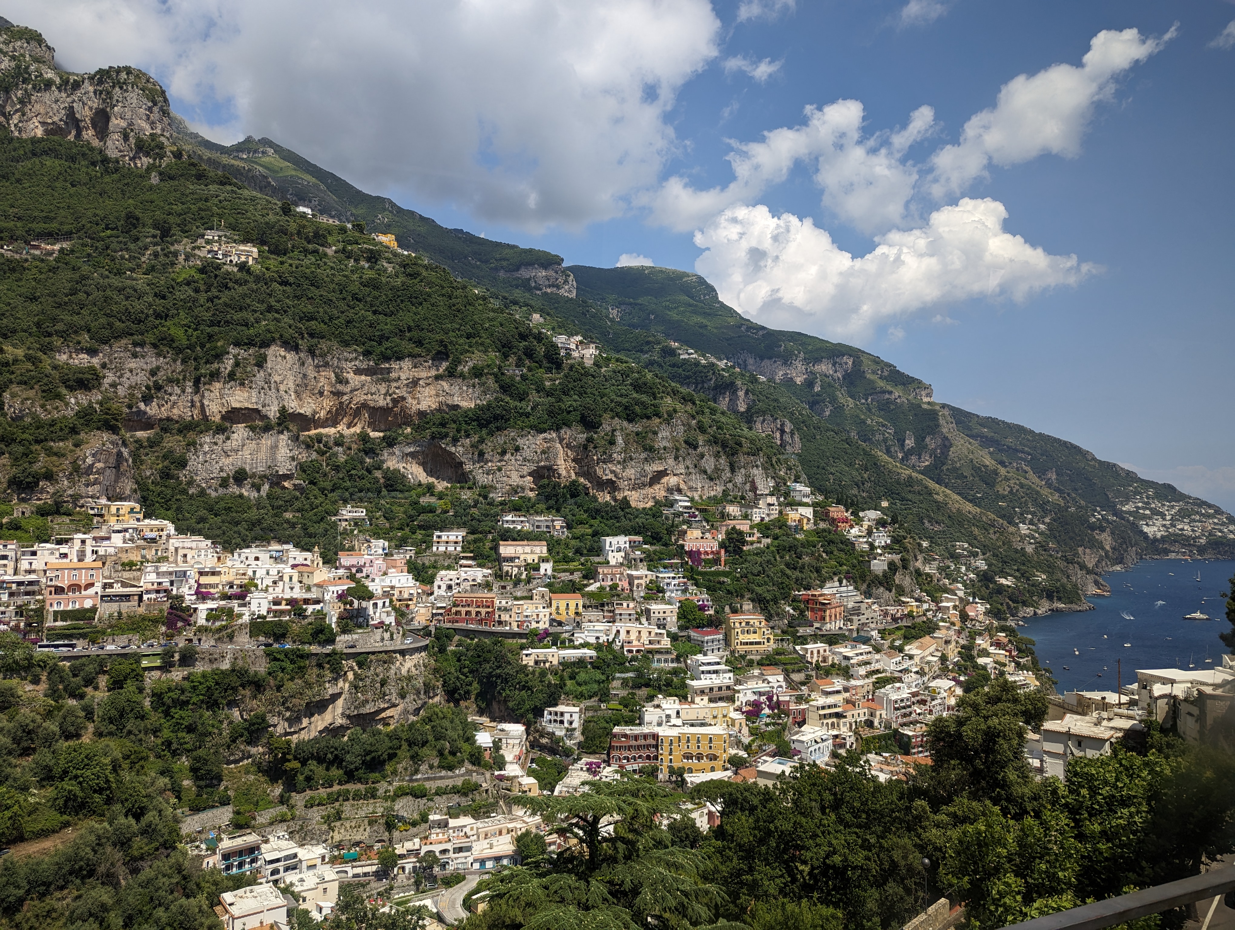 The buses are very crowded and you need to buy your ticket from a nearby convenience store or hotel. If I was lucky, I got to sit in a seat. Otherwise, standing room was offered. We all piled in. The roads were so curvy that it was easy to get dizzy. The busses would toot their horns to warn oncoming cars when they were approaching a narrow passageway. Sometimes, the oncoming car would have to reverse to let the bus through. Often, the negotiation between drivers would be accompanied by waving their hands in a very Italian fashion.