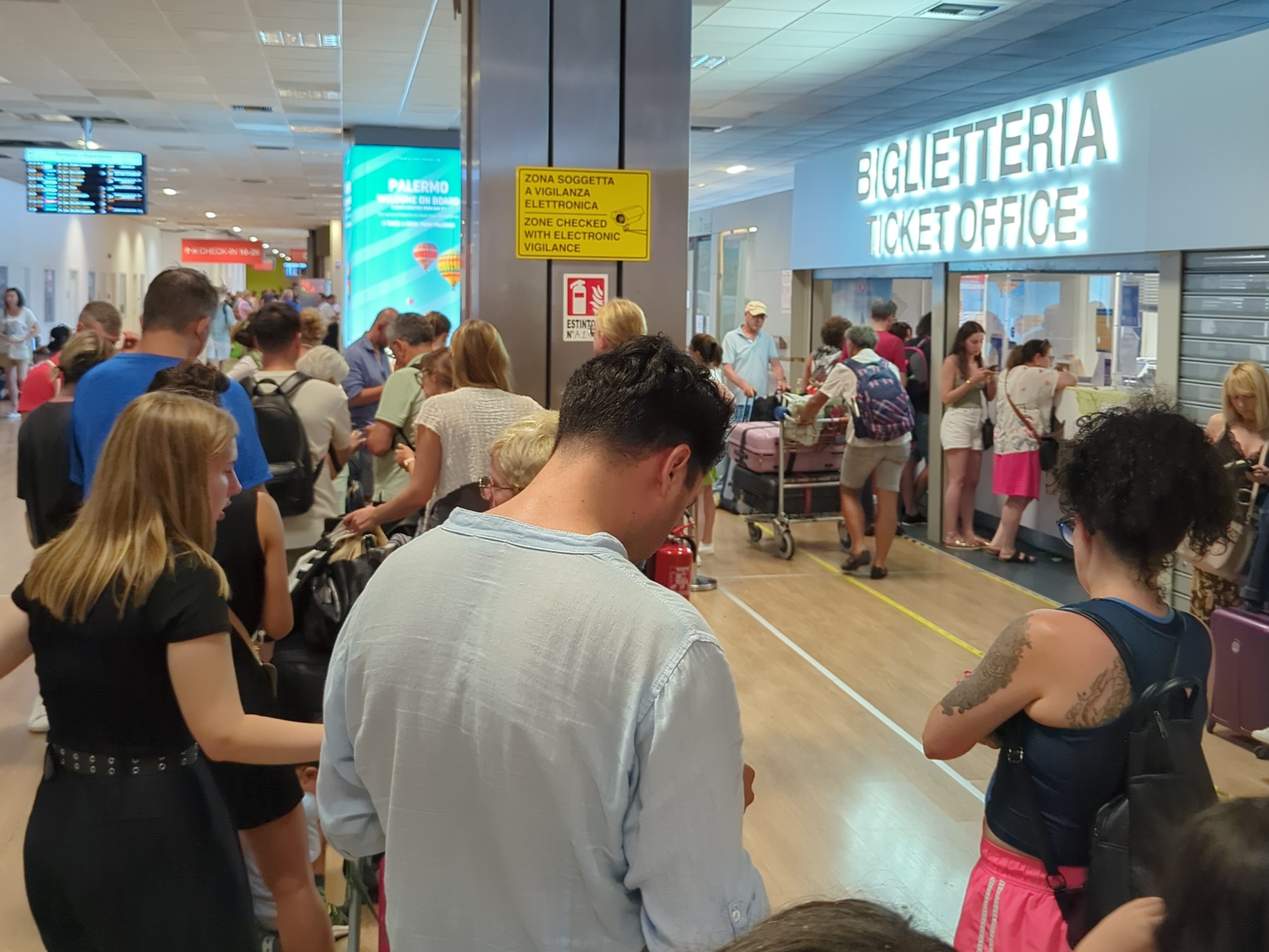 I arrived early to the Palermo airport for my flight to London. It was especially crowded since the other Sicily airport had suffered a fire and was closed for the next few days. A lot of travelers were rerouted to Palermo. My flight was with RyanAir, and the app told me to go to the ticket desk in order to print my boarding pass. I ended up waiting in a very slow line for 3 hours. When I made it to the front, the lady told me that I didn’t need to wait in that line; all I had to do was go to the Ryanair ticket desk. The ticket desk line was much shorter.