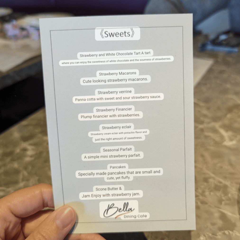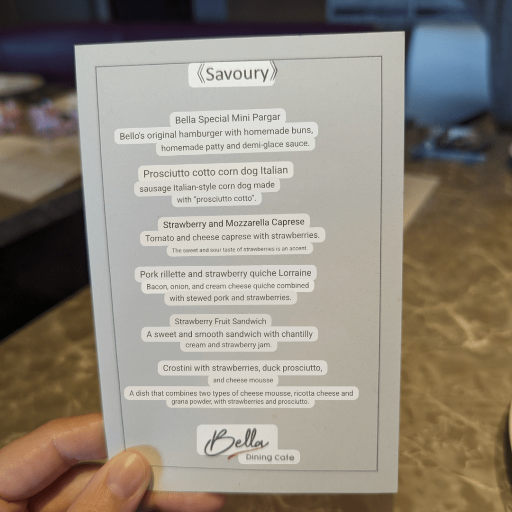 I love strawberries, and it is strawberry season here! Lucky me! Strawberry season is from December to May, and the strawberries here are so perfect and juicy and sweet. Seika treated us to a strawberry-themed fancy afternoon tea. It was everything I could have hoped for. So many different ways to enjoy a strawberry. Some items were sweet and some were savory.
