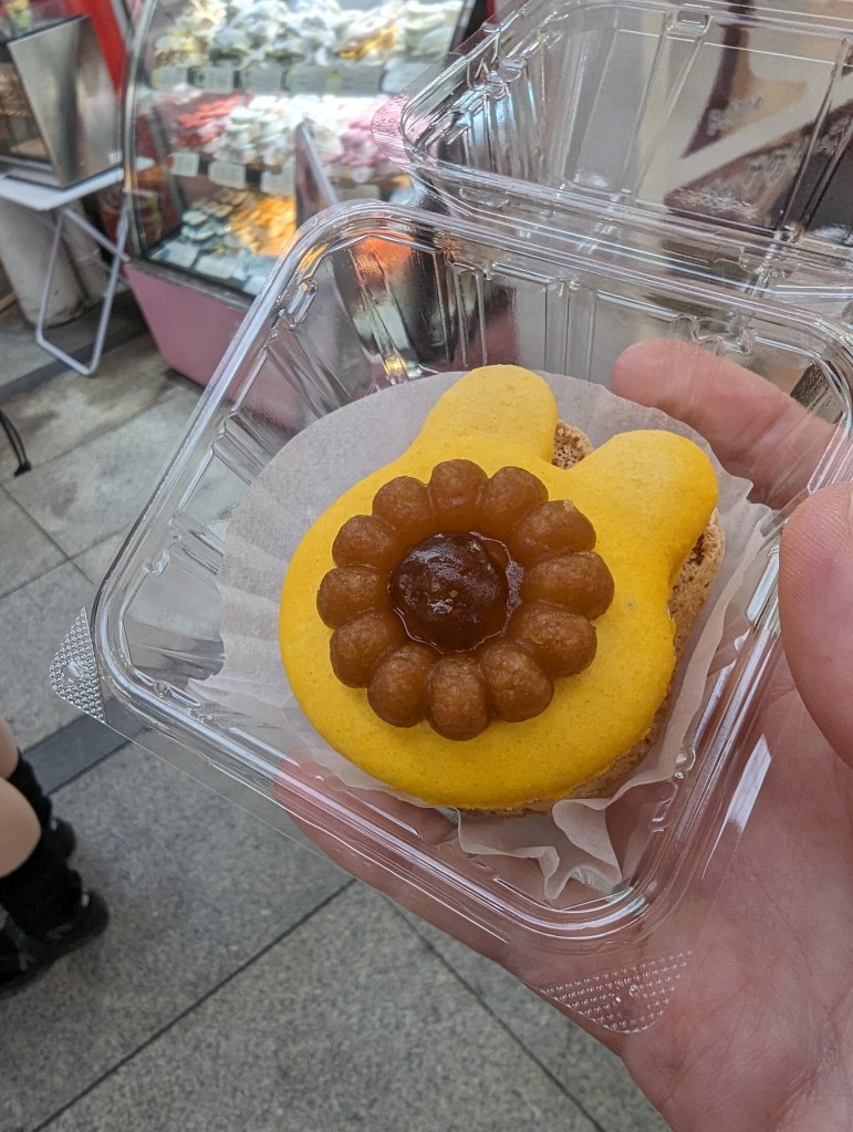 I also had a cheese filled bread shaped like a ¥. I saw others eat it with a magnificent cheese pull, but mine didn’t do that.