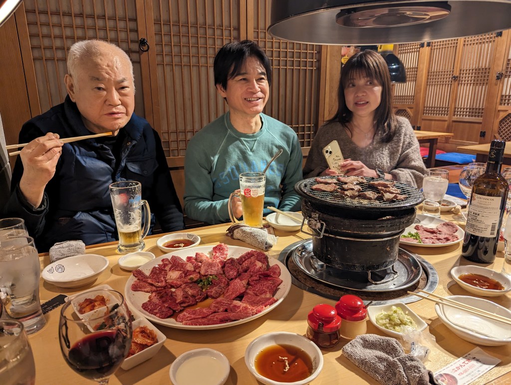 I really enjoyed the Japanese barbecue experience, yakiniku, with Seika, her grandpa, her parents, and her uncle. Grandpa treated us to dinner. Thank you!