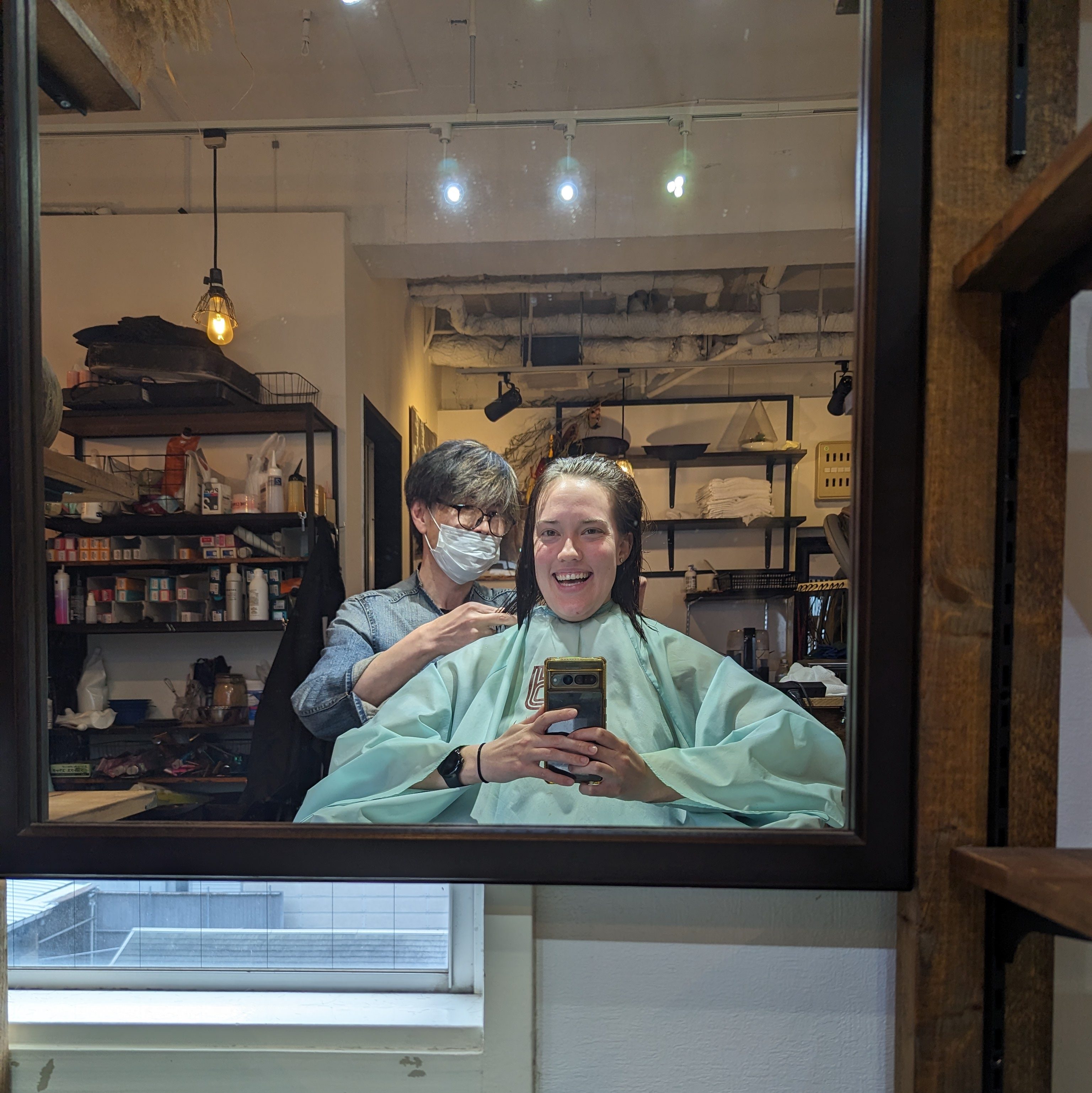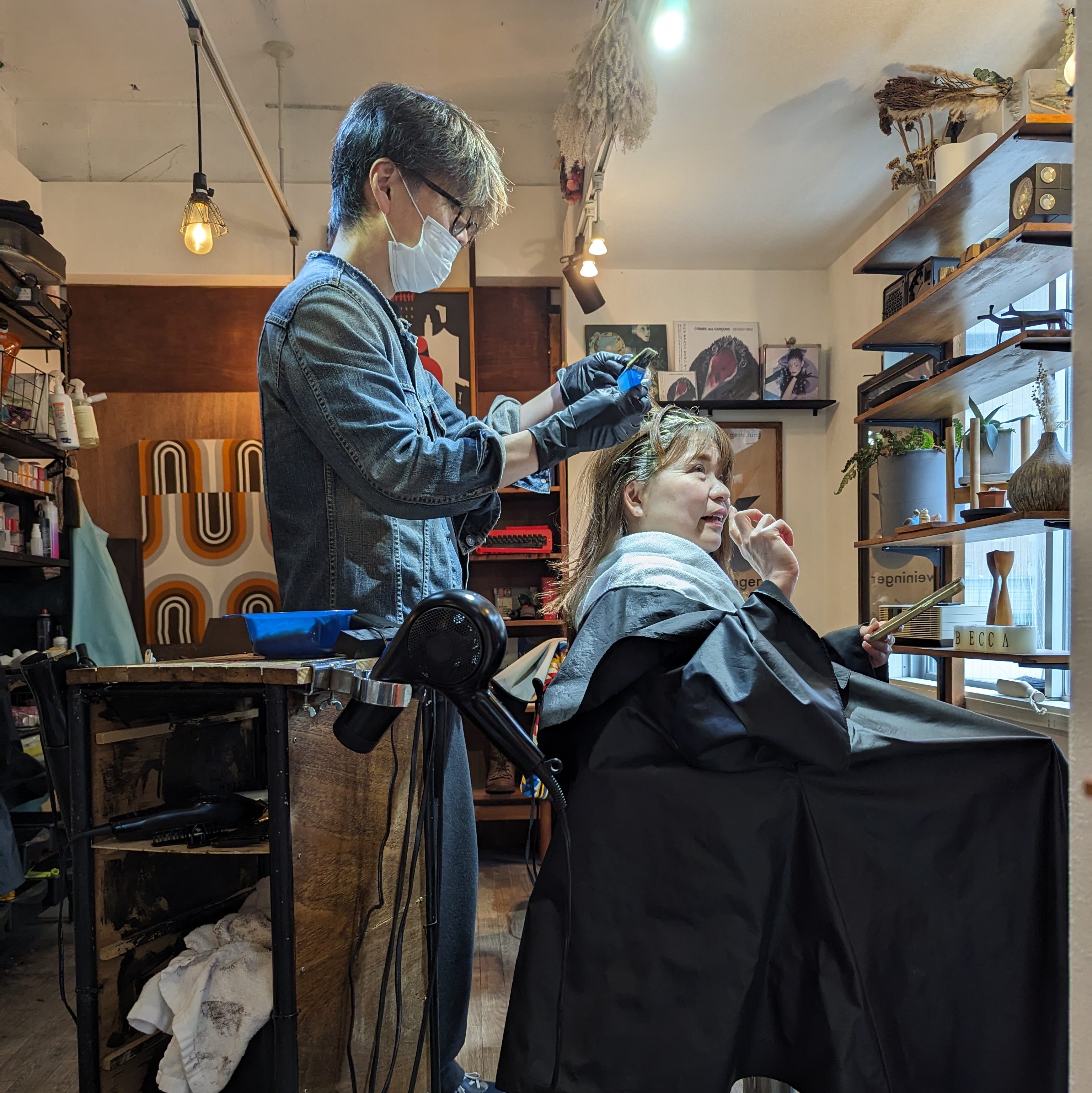 This afternoon, Seika’s mom had a haircut appointment. I joined her to also get a haircut myself. It was fun activity to do together! Her hairdresser is her friend and her old classmate.