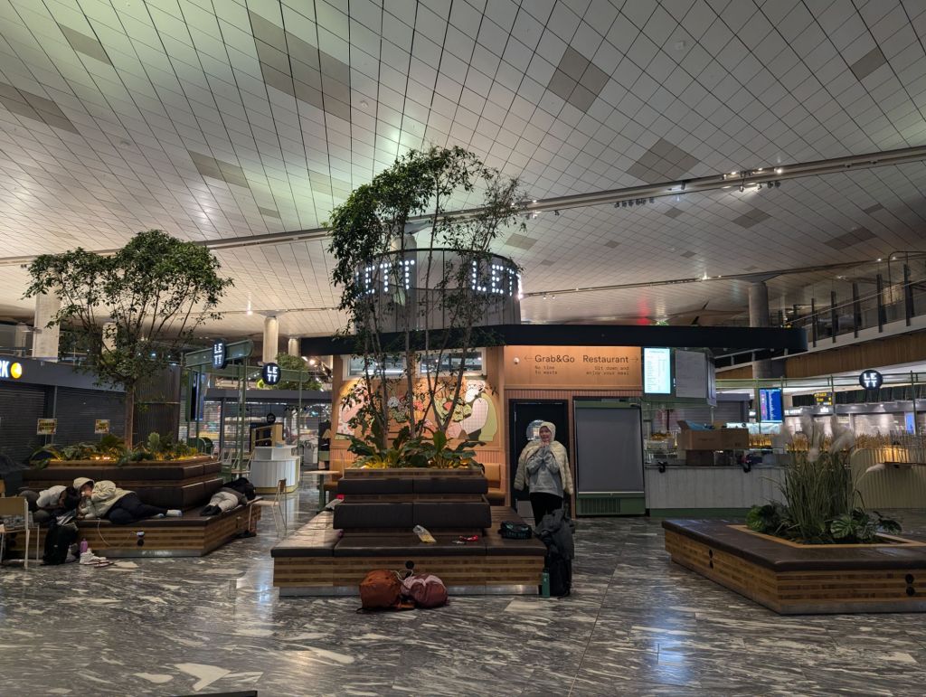 The Oslo airport was actually pretty friendly to airport sleepers. We were not the only ones with the idea. The airport was comfortable and fairly quiet.