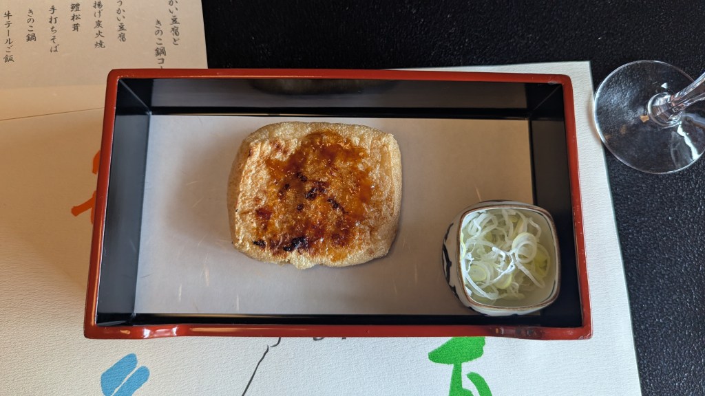 Then, fried tofu blocks with fish flakes on top,