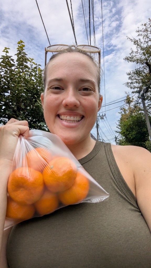 I was especially on the hunt for mikan! I love canned mandarin oranges in the USA, and these were very much like that. Very juicy! みかんが大好きです! (Mikan ga daisukidesu!, I love mandarin oranges!) I ate as many as possible!