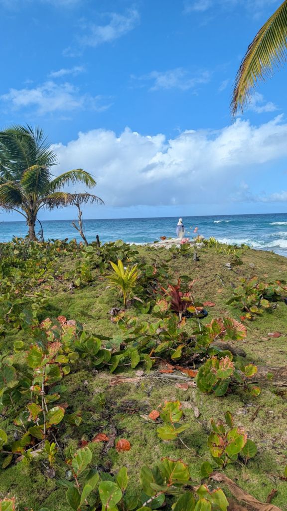 I thought the Mary statue among all the beautiful foliage and sky and ocean was beautiful.