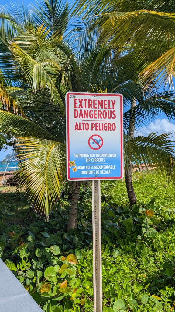 My hostel was closer to Condado beach which is nice for looking, but there are a million signs warning of the strength and danger of the waves. I went to Condado for a brief moment between other adventures, but I didn’t have a beach day there. Some people were out in the water. Either they didn’t see the signs, or they don’t have a healthy fear of the ocean.