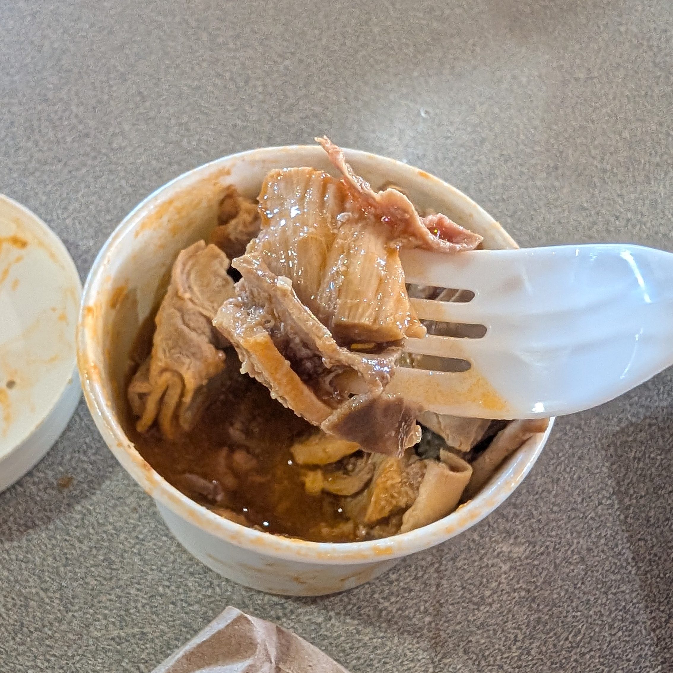 Chinchorreo is about food, too, and not just drinks. Our first stop, we were recommended to try the Cuajito Guisado, which is stewed pig stomach. It was actually really yummy, but I didn’t have time to eat very much of it before it was time to get back on the bus. Also, although it was delicious, my picky eater brain was a bit shy to eat this whole thing and then go drinking anyways.