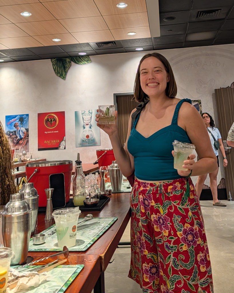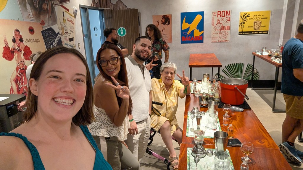 I really bonded with the family and even spent the next day with them. They were so kind and picked me up! We went to Casa Bacardí and did a tour and cocktail making class. Casa Bacardí is the world’s largest premium rum distillery and is located in Puerto Rico. Bacardí was originally produced in Cuba, and still today they use the yeast that originated from the same strain of yeast from the 1850’s in Cuba. The bat is the logo because a colony of bats settled in the rafters where it was being fermented because they enjoyed the smell of the molasses fermentation. In Taino and Spanish culture bats are considered spiritual and thought to bring good health, fortune, and family unity. Also, marketing-wise, it was easy for people to remember Bacardí and asking for “el ron del murcielago” (the rum of the bat).