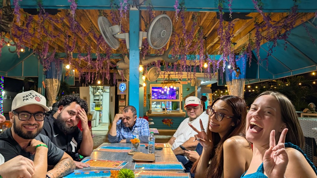 There were small groups of people who signed up together, some from Puerto Rico, New York, Texas, etc. I was sola (alone). We all started off very shy. I ended up sitting down by a Colombian family consisting of cousins, moms, girlfriends, uncles, sons, etc. It is two of their birthdays this week! On the first leg of the Chinchorreo, I got to talking to the mom, Norma, and her son’s girlfriend, Carolina. We made fast friends! I am so thankful! During the Chinchorreo, everyone on the bus got to know each other well and we enjoyed dancing and hanging out together!