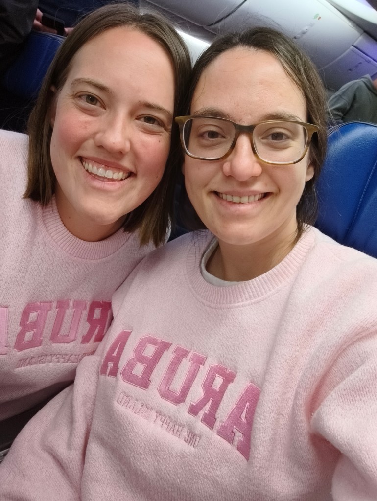 Aruba is a direct flight from Chicago, so she flew to me, and then we flew together.