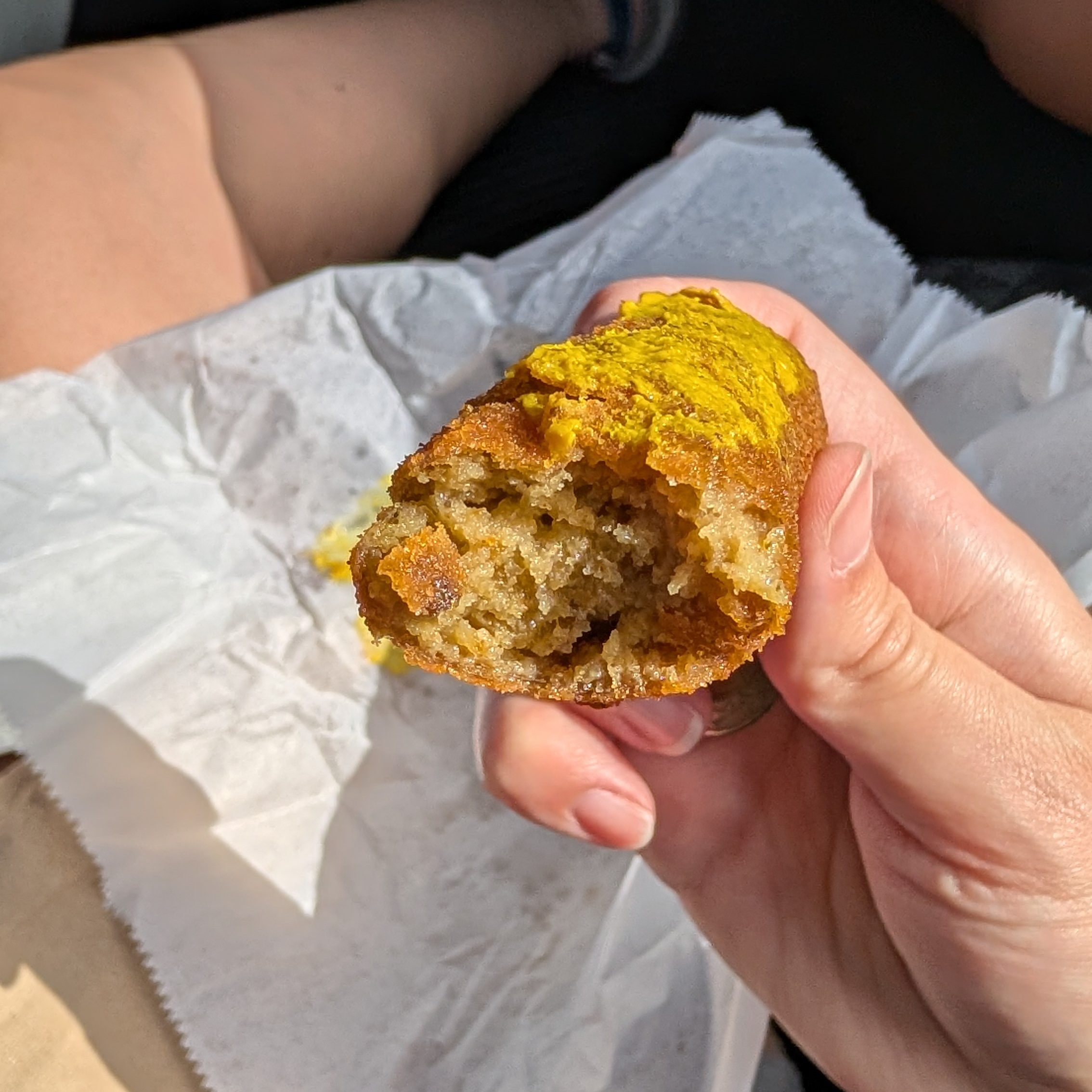 On the way to Arikok National Park, Aruba’s national park, we stopped at a local kiosk to buy some treats. We bought a few pastechis, which is shaped like an empanada or calzone, but the most delicious item was the croket, which was a fried potato and meat croquette.