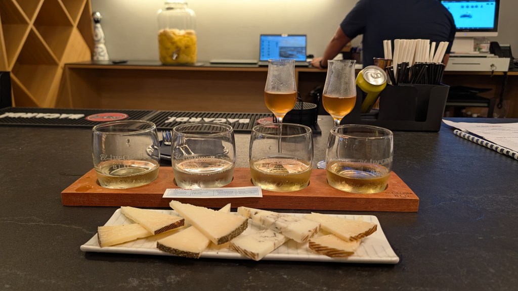We ate a lot of cheeses. When we went out to dinner, we found a cidery and decided to stop in for a drink. They served their cider flight with more cheese!! We were cheesed out.
