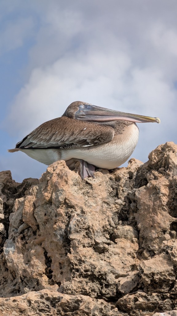 We walked a bit south to the adjacent beach and got to see this very relaxed pelican.